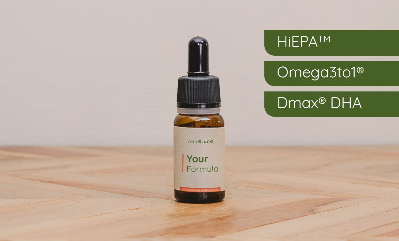 Not only do we offer ready-to-go vegan soft gels with our exclusive Omega3to1® algal oil, our Dmax® 500 Algal DHA or our latest HiEPA™ Agal oil all at very low MOQ, we also use these raw materials to create custom products like pipette bottles, liquid oil products and soft gels that fit your brand and give it that uniqueness so you can stand out from the crowd.